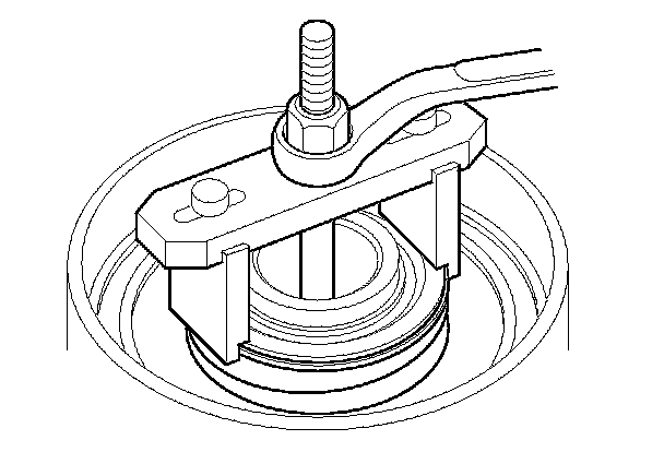 8. Check the placement of the clutch spring compressor attachment. If either end of the clutch spring compressor attachment is set over an area of the spring retainer that is unsupported by the return spring, the spring retainer may be damaged.