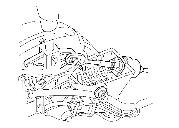 12. If the cable end is out of position on the mounting stud, remove the shift cable from the bracket, and reinstall the shift cable. Do not install the shift cable end on the mounting stud while the shift cable in on the bracket.