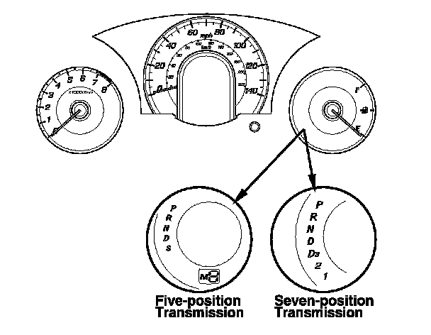 15. Turn the ignition switch to ON (II). Move the shift lever to each position, and check that the A/T gear position indicator follows the transmission range switch.