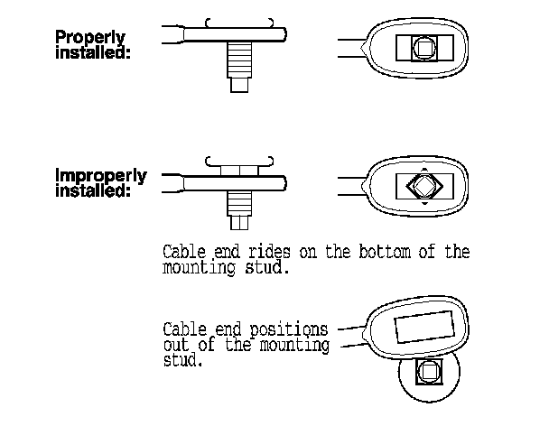 If the cable end rides on the bottom of the mounting stud, rotate the stud and align the square fitting with the hole.