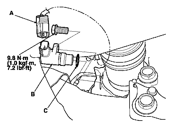 4. Install the parts in the reverse order of removal with a new O-ring (C).