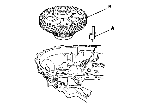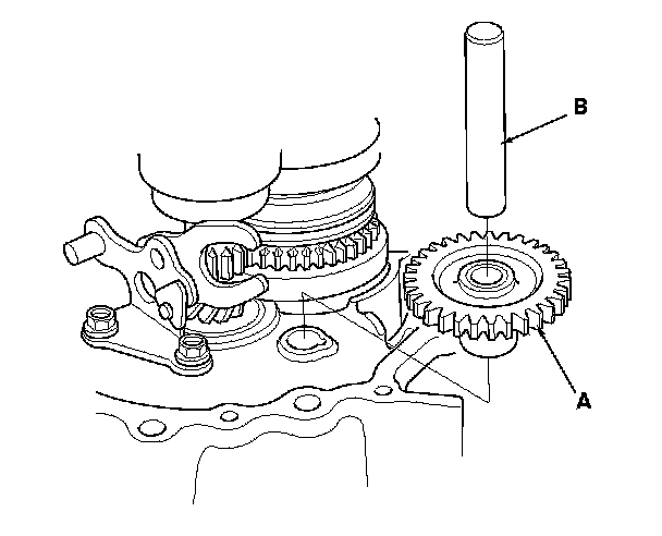 7. Install the reverse idler gear (A) and the reverse gear shaft (B).