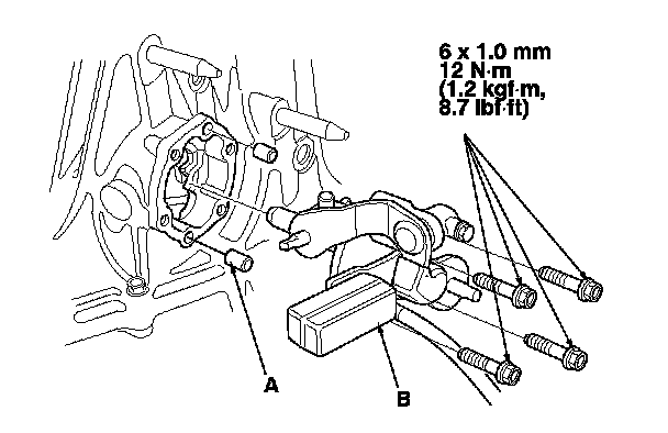 2. Install the 8 mm spring washer (A) and the 8 mm special bolt (B).