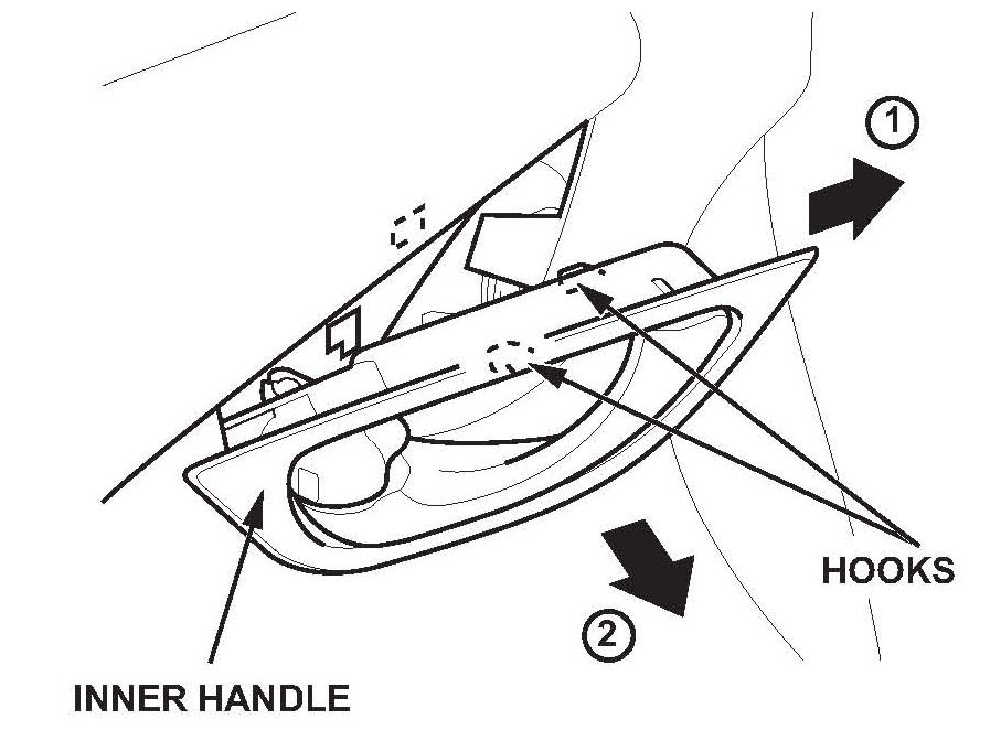 9. Remove the door panel while pulling the inner handle out through the hole in the door panel.