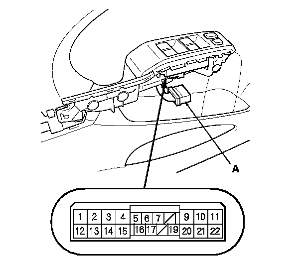 2. Disconnect the 22P connector (A) from the power window master switch.