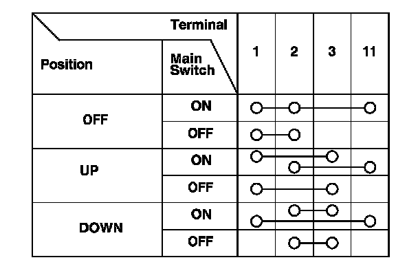 The driver's switch is combined with the control unit so you cannot isolate the switch to test it. Instead, run the master switch input test procedures. Power Window Master Switch Input Test If the tests are normal, the driver's switch must be faulty. Replace the switch.