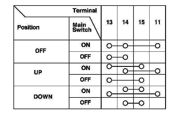 4. If the continuity is not as specified, replace the switch. Power Window Master Switch Replacement