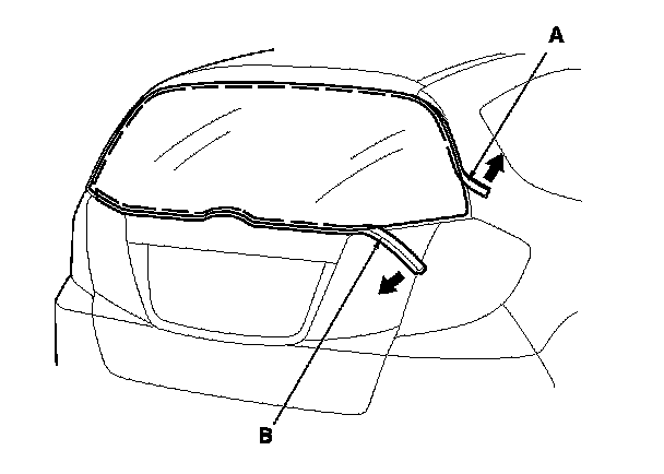 2. Remove rubber dams A and B from the edge of the rear window. If necessary, cut the rubber dam with a utility knife.