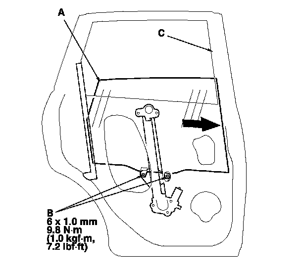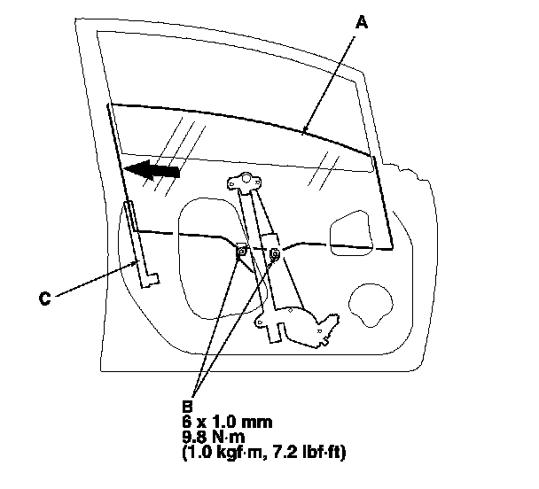 4. Push the glass against the channel (C), then tighten the glass mounting bolts.