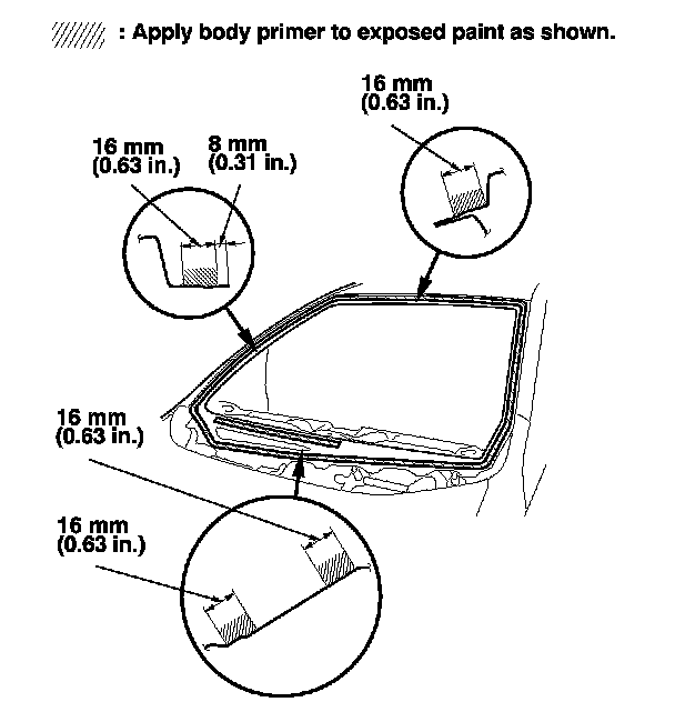 - Never touch the primed surfaces with your hands. If you do, the adhesive may not bond to the windshield properly, causing a leak after the windshield is installed.