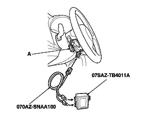 4. Disconnect the driver's airbag 4P connector (A) from the cable reel.