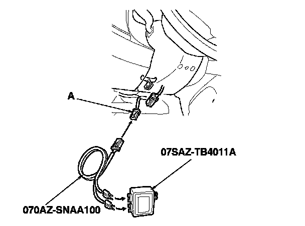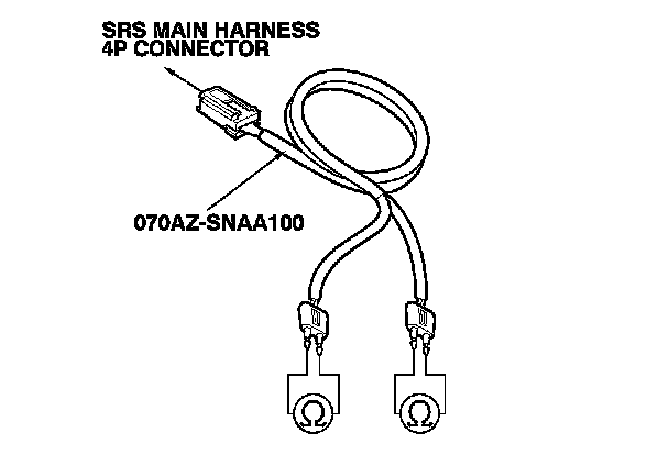 11. Connect the SRS inflator simulator (2 Ohms connectors) and the SRS simulator lead to the SRS main harness.