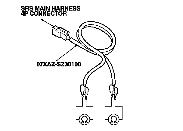 5. Connect the SRS inflator simulator (2 Ohms connectors) and SRS simulator lead F to the SRS main harness.