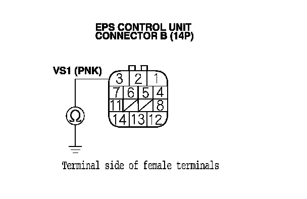 8. Check for continuity between EPS control unit connector B (14P) terminal No. 3 and body ground.