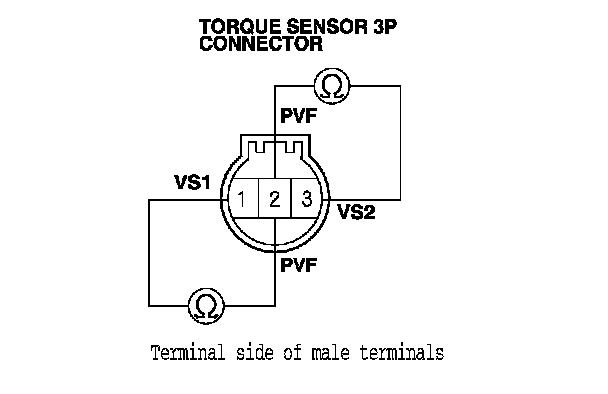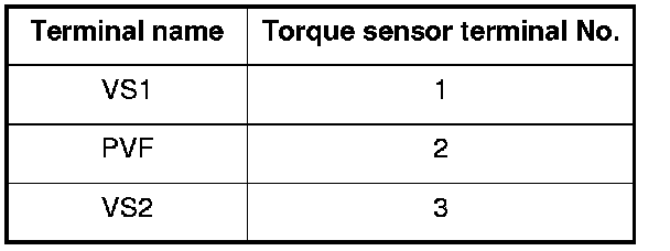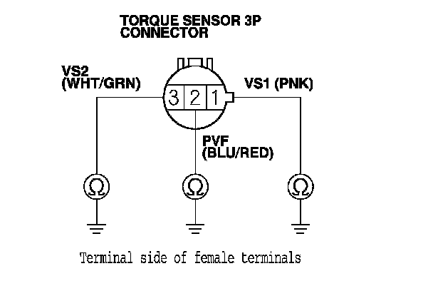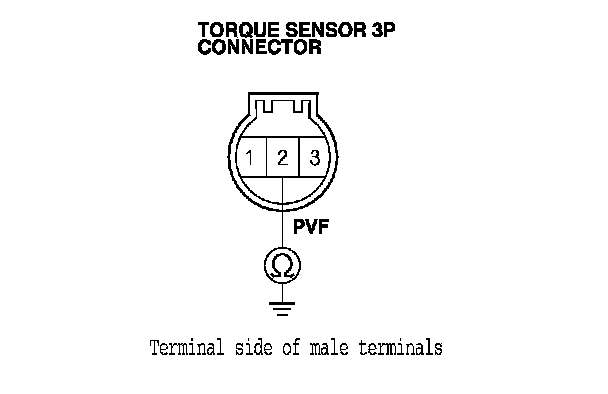 10. Check for continuity between the appropriate torque sensor 3P connector terminal and body ground (see table).