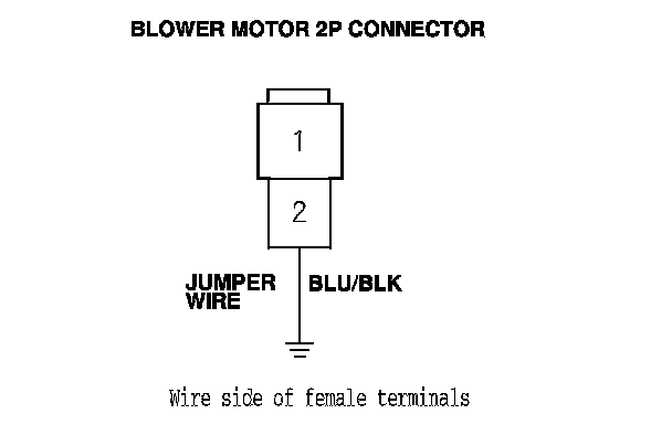 2. Connect blower motor 2P connector terminal No. 2 to body ground with a jumper wire.