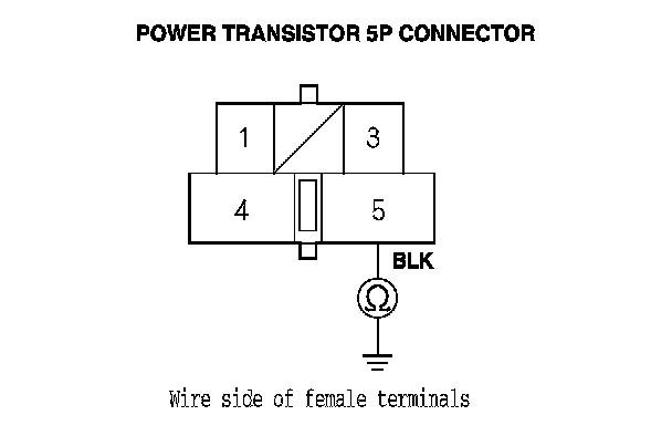 7. Check for continuity between power transistor 5P connector terminal No. 5 and body ground.