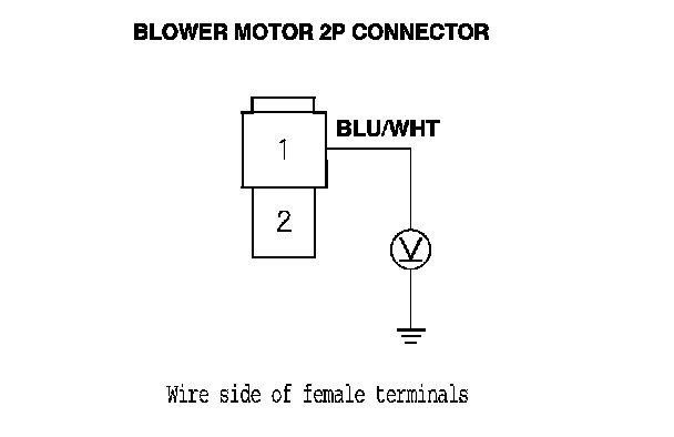 19. Measure the voltage between blower motor 2P connector terminal No. 1 and body ground.