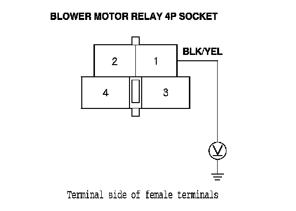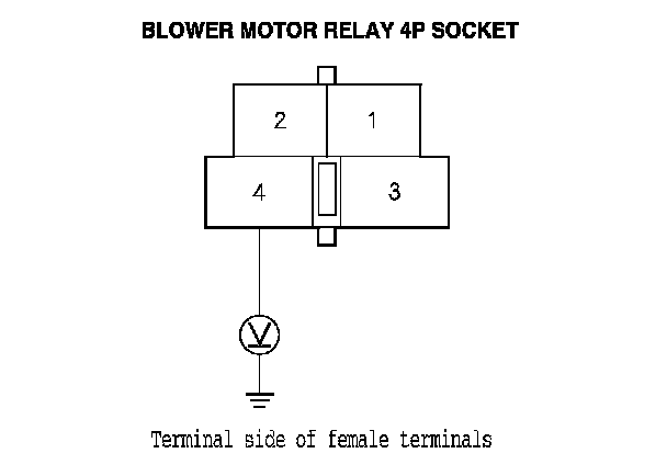 24. Measure the voltage between blower motor relay 4P socket terminal No. 1 and body ground.