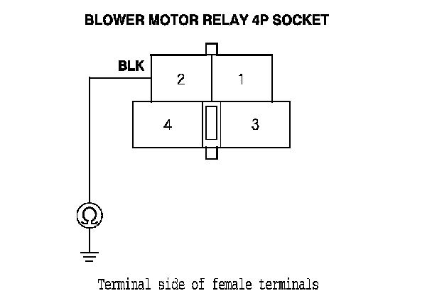 26. Check for continuity between blower motor relay 4P socket terminal No. 2 and body ground.
