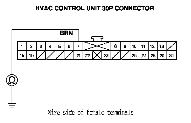 4. Check for continuity between HVAC control unit 30P connector terminal No. 7 and body ground.
