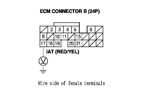 11. Measure the voltage between IAT sensor 2P connector terminal No. 1 and body ground.