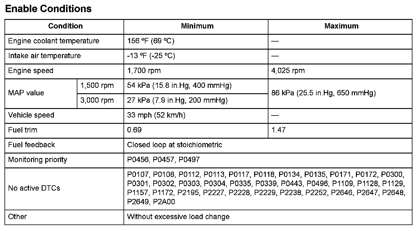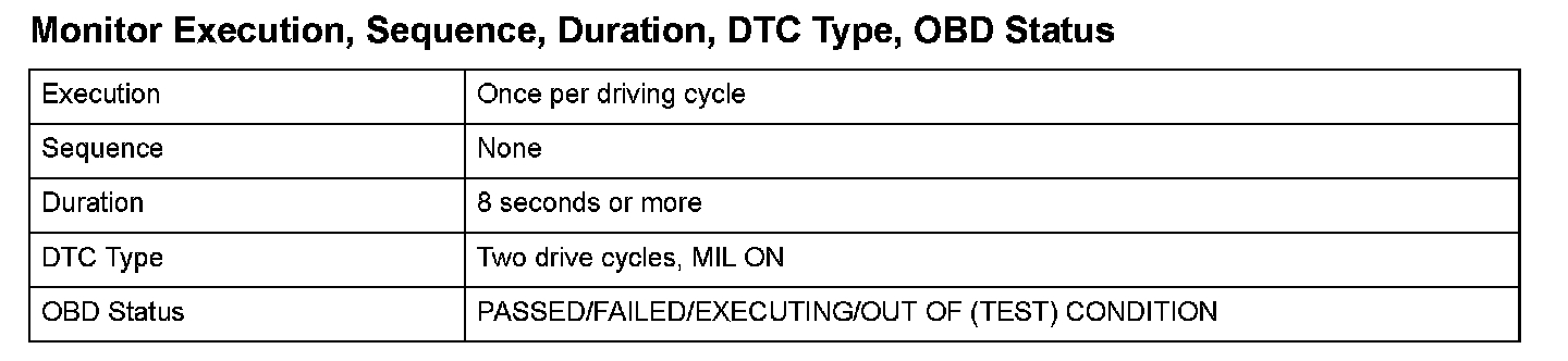 Monitor Execution, Sequence, Duration, DTC Type, OBD Status