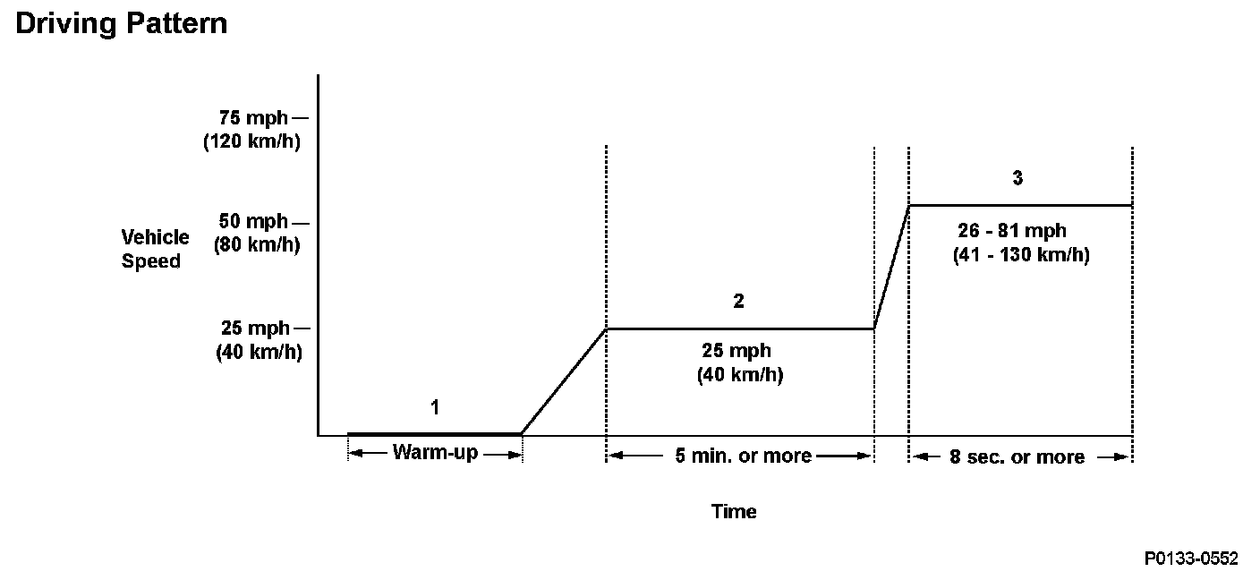2. Drive the vehicle at a steady speed up to 25 mph (40 km/h), for at least 5 minutes.