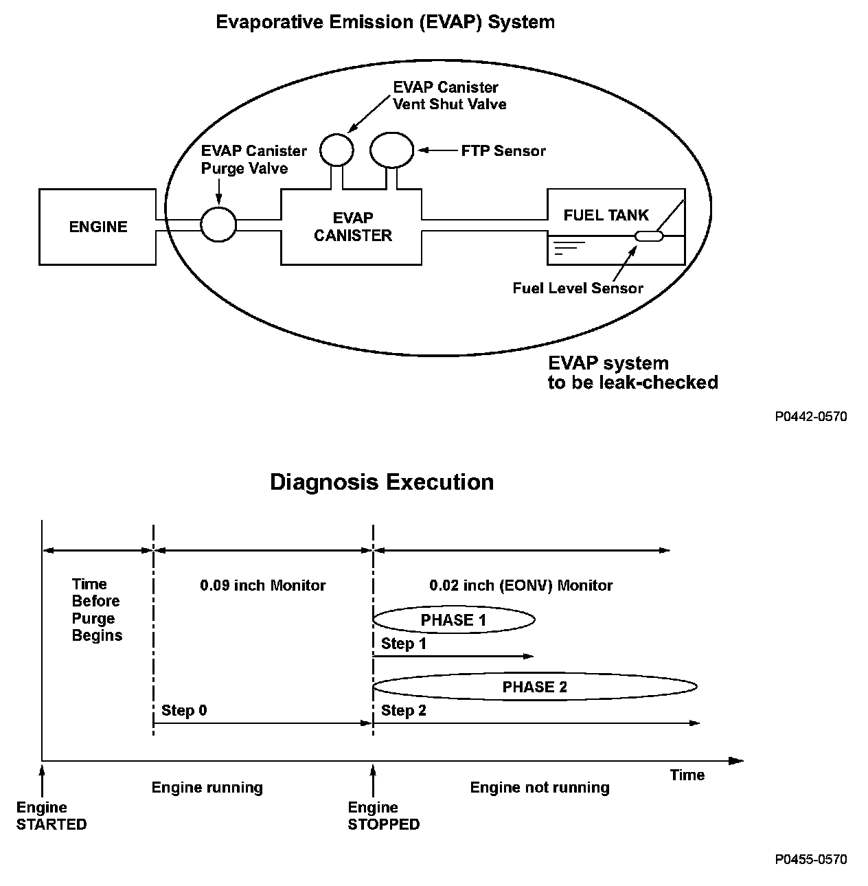 - If "no 0.02 inch leak" is not detected, the ECM goes to step 2, detection of a 0.02 inch leak [phase 2].