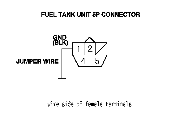 8. Connect fuel tank unit 5P connector terminal No. 1 to body ground with a jumper wire.