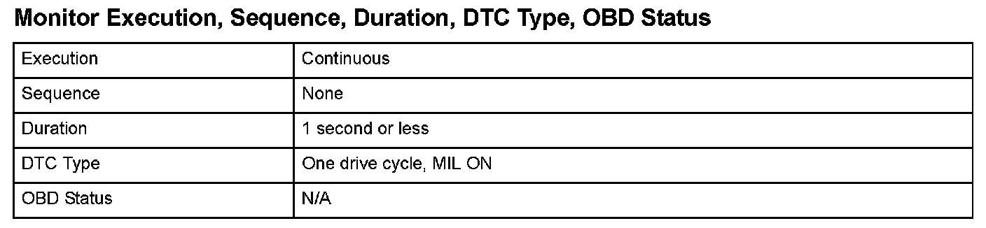 Monitor Execution, Sequence, Duration, DTC Type, OBD Status