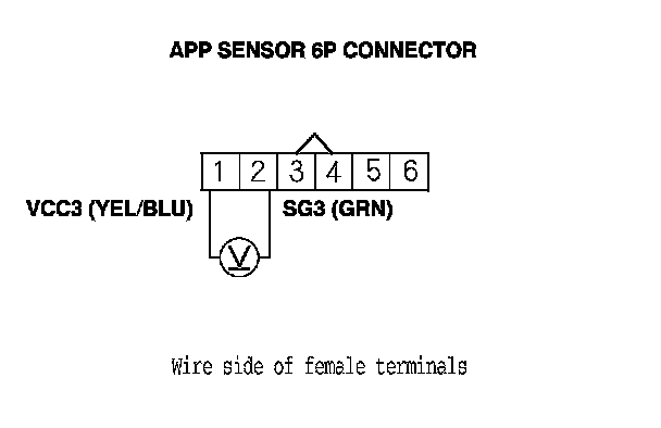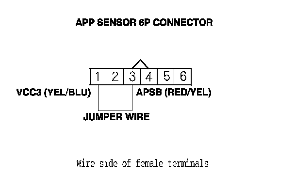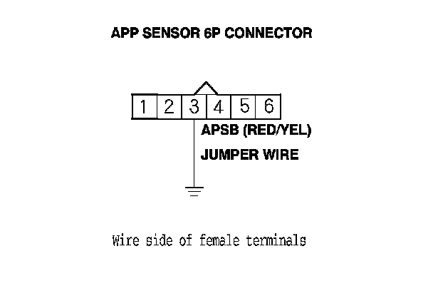 11. Connect APP sensor 6P connector terminal No. 3 to body ground with a jumper wire.