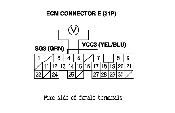17. Measure the voltage between ECM connector terminals E4 and E5.