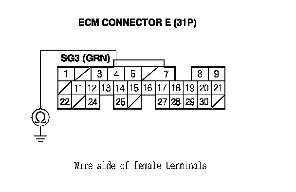 16. Check for continuity between ECM connector terminal E4 and body ground.