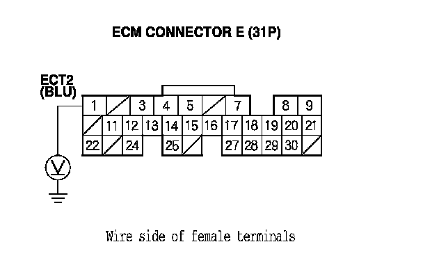 17. Measure the voltage between ECM connector terminal E1 and body ground.