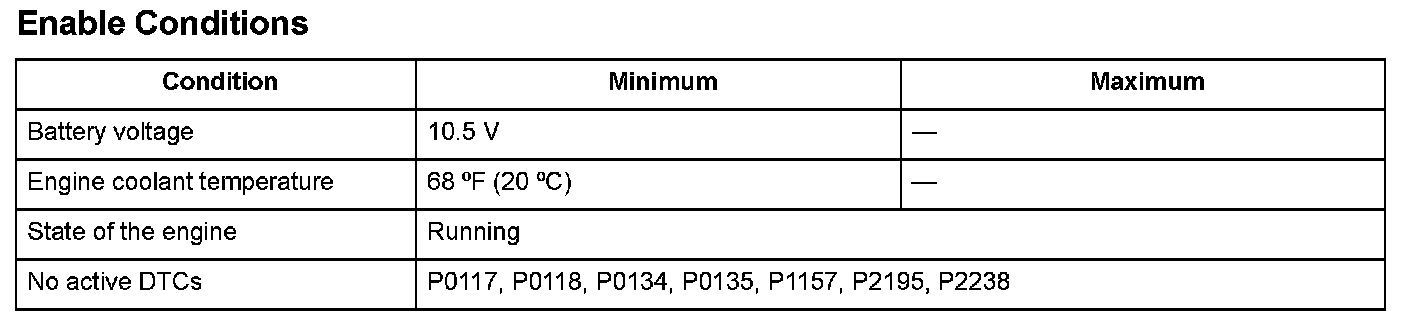 If the element is not activated or the ECM terminal voltage is a set value or less for a set time when power is drawn to the A/F sensor (sensor 1) heater, a malfunction is detected and a DTC is stored.