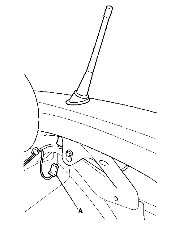 3. Disconnect the 2P connector (A) from the AM/FM antenna amplifier.