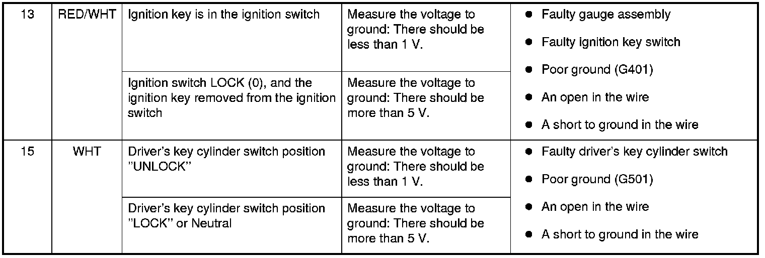 3. Reconnect the connector to the control unit, and do these input tests at the following connector.