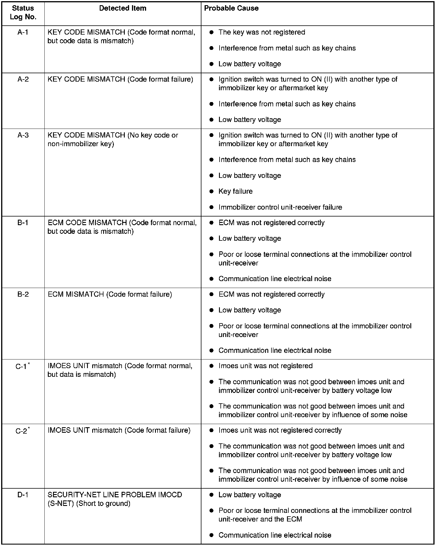 Immobilizer System Status Log