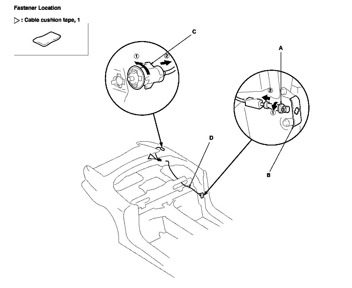 4. Install the cable in the reverse order of removal with a new piece of cable cushion tape.