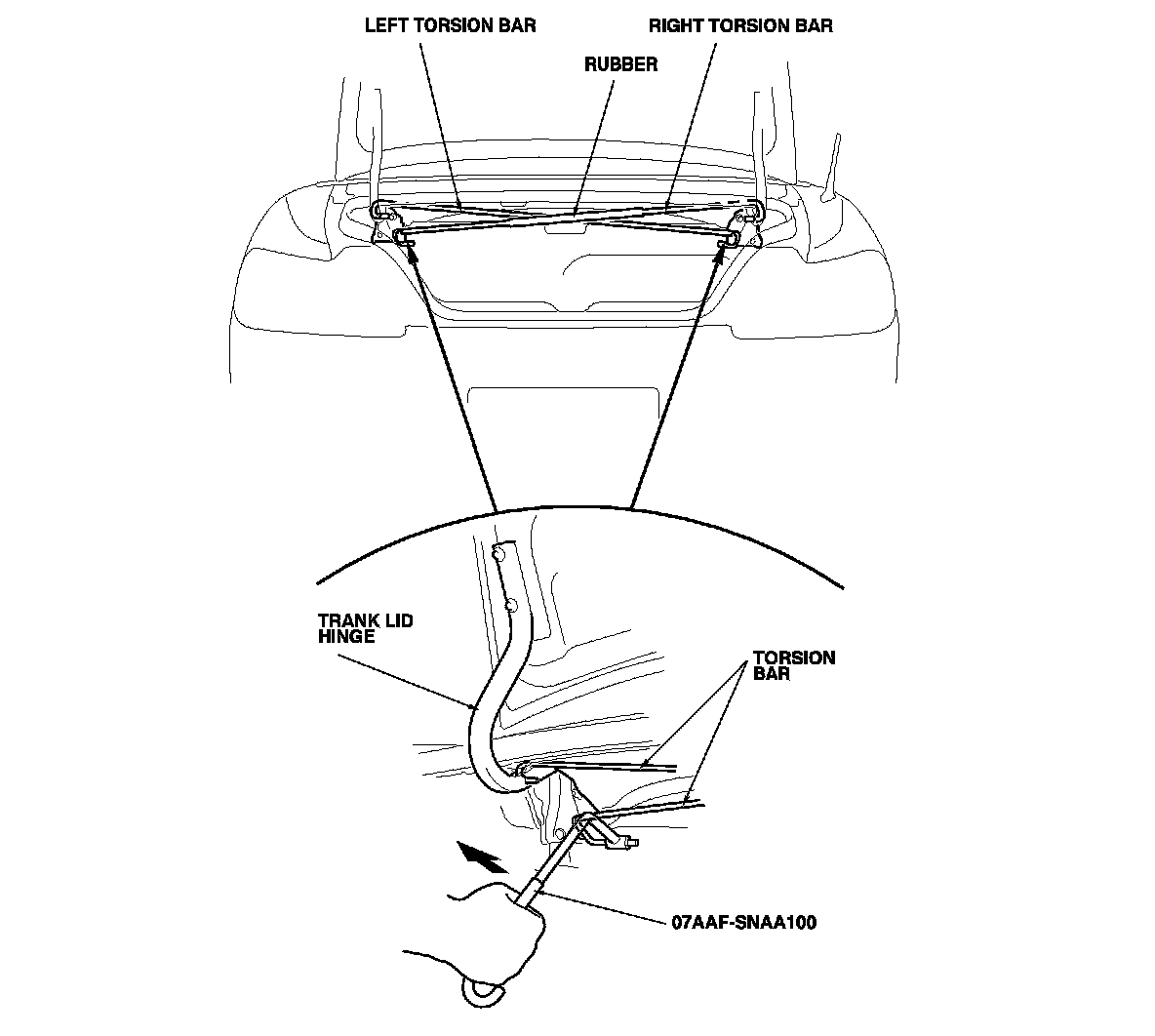 1. Remove the trunk lid torsion bars as shown.
