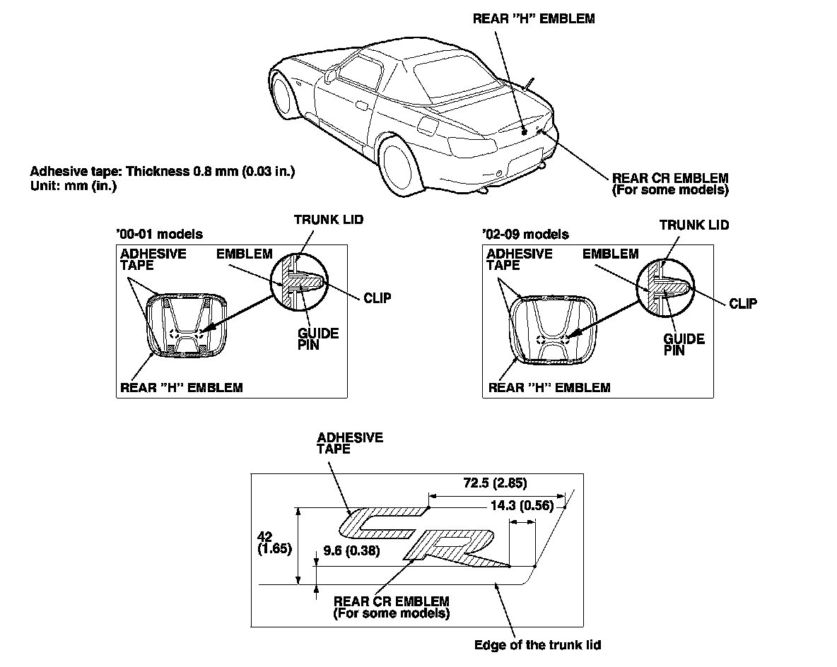 NOTE: When removing the emblems, take care not to scratch the body. Use dental floss to cut the adhesive safely.