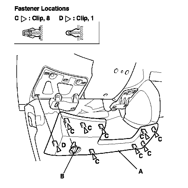 Gently pull out on the bottom edge to release the clips (C, D).