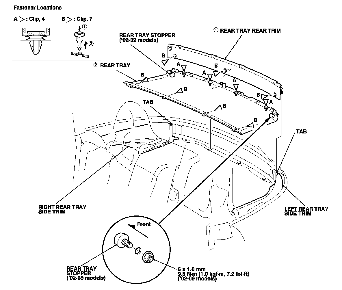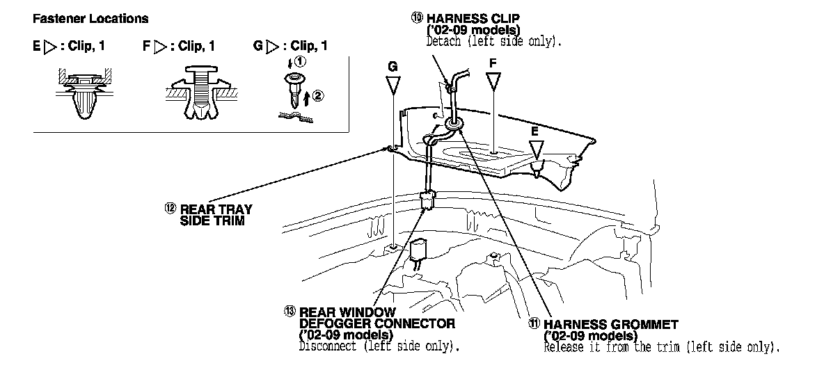 Interior Trim Removal/Installation - Rear Tray Area (Except CR model)