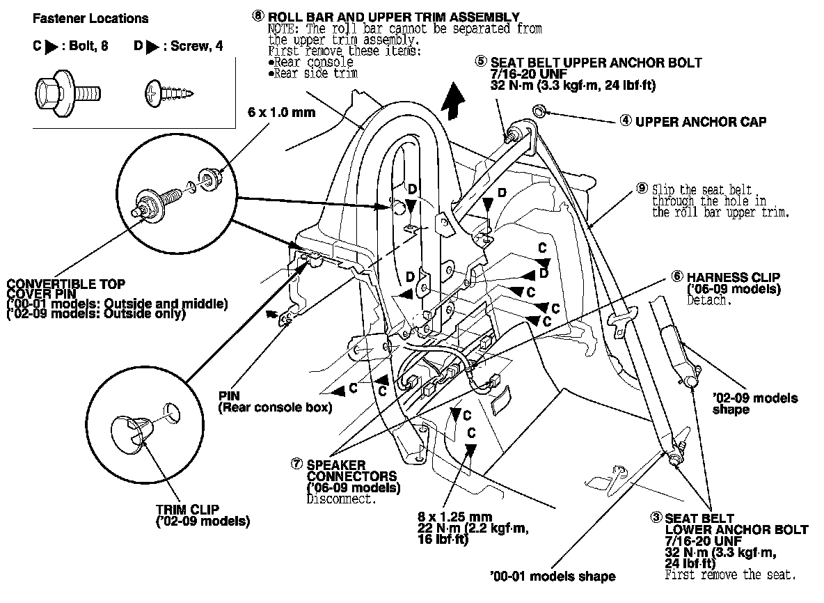 - Take care not to bend or scratch the top cloth, the rear window, the trim, or the panels.