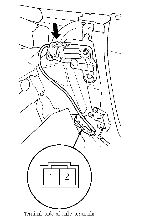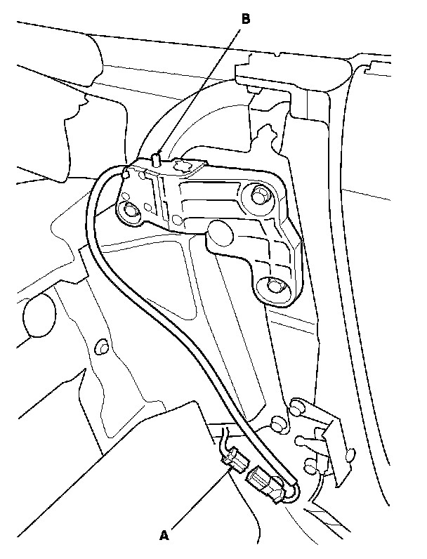 2. Disconnect the 2P connector (A) from the convertible top disable switch (B).
