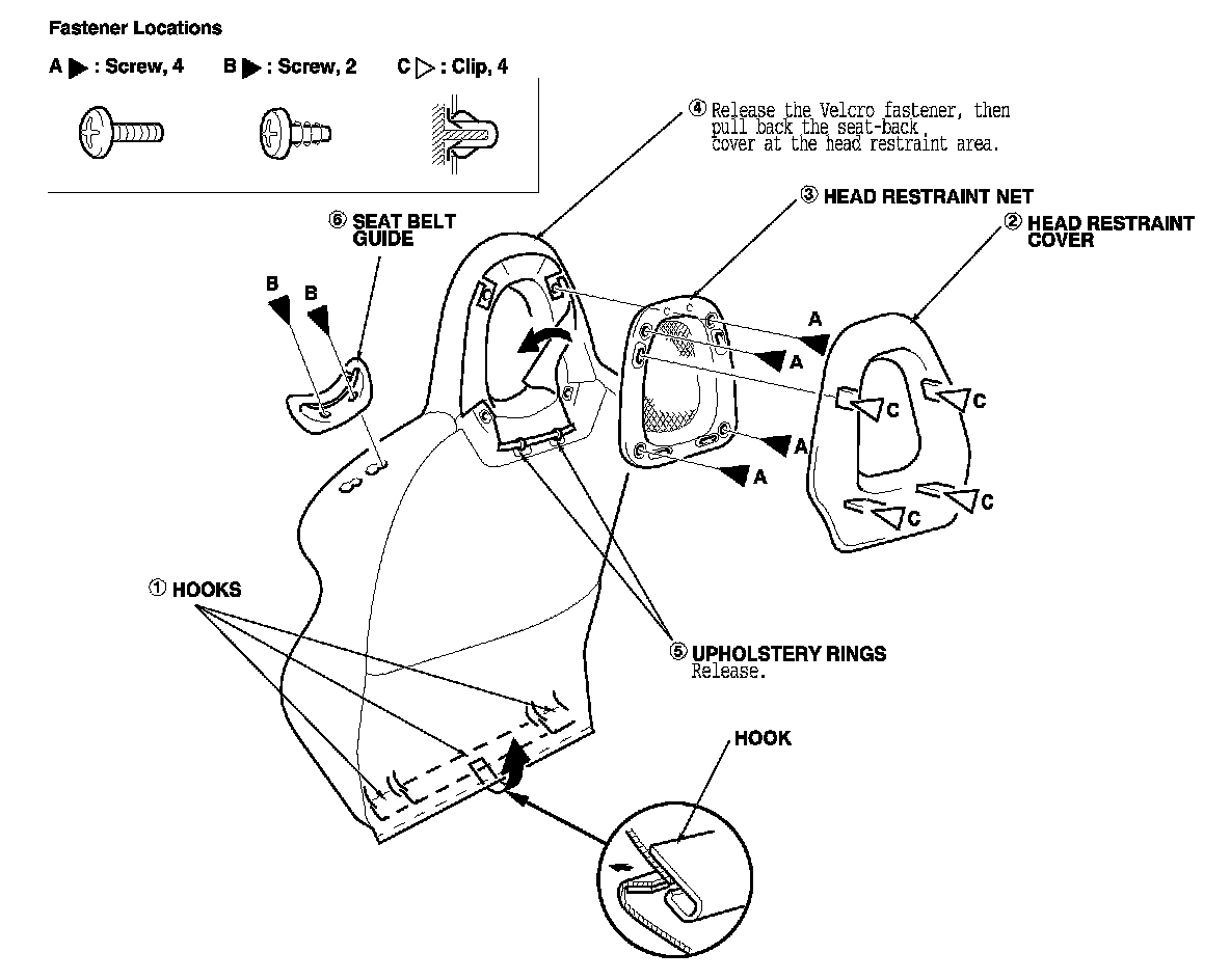 - If the head restraint cover clips are damaged or stress-whitened, replace them with new ones.