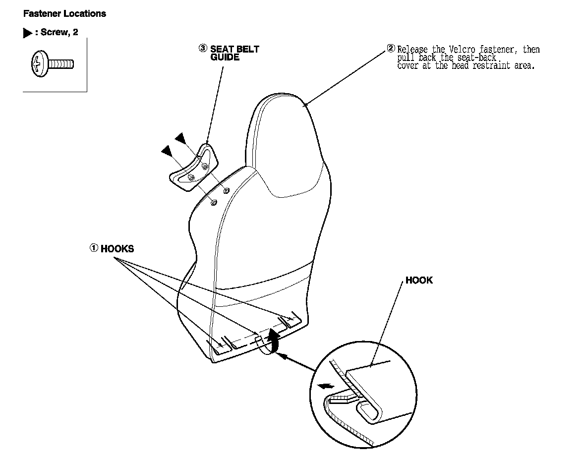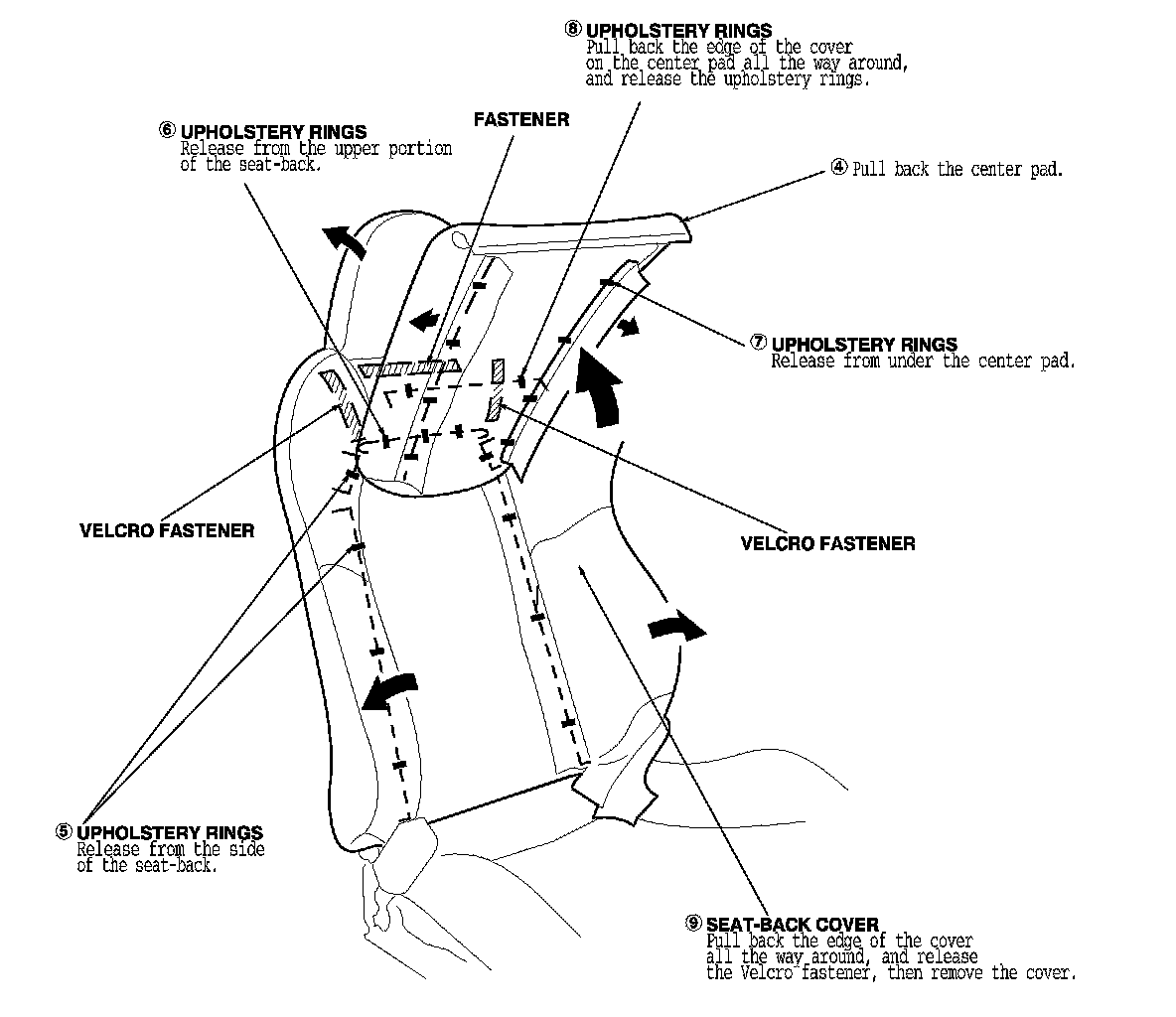 - To prevent wrinkles when installing a seat-back cover, make sure the material is stretched evenly over the pad before securing the clips, the Velcro fasteners, and the hooks.