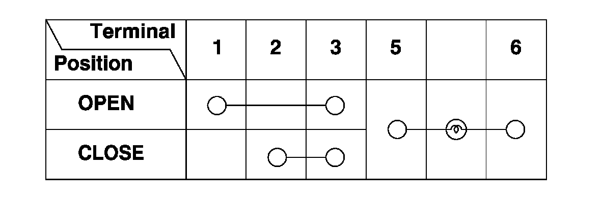 3. Check for continuity between the terminals in each switch position according to the table.
