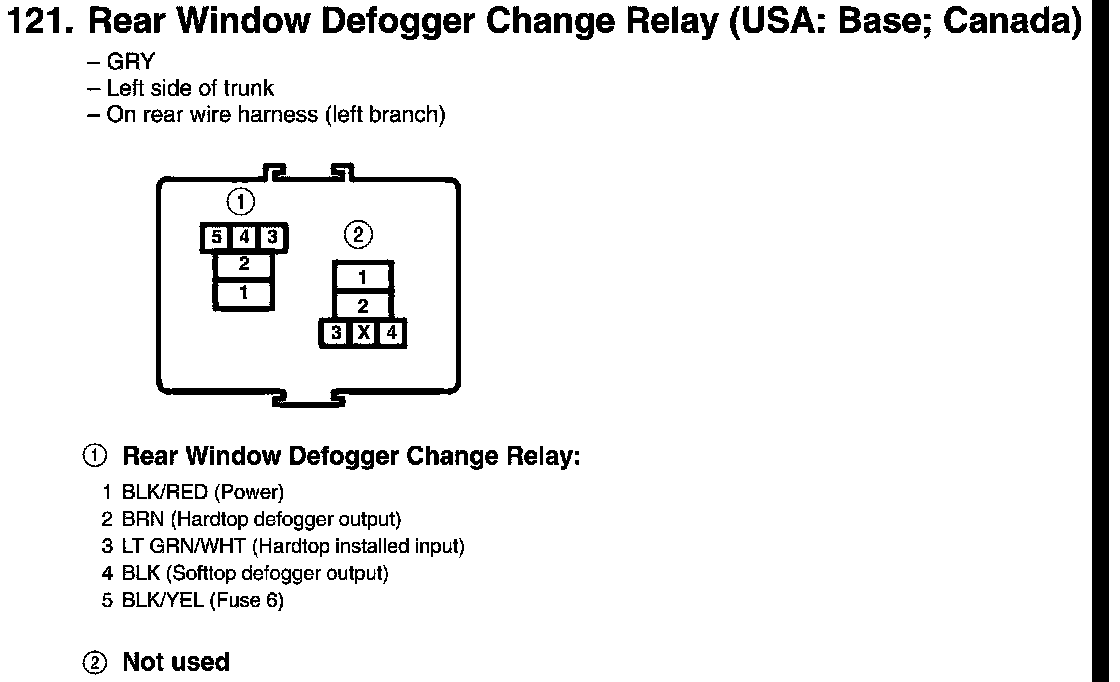 View 121 Rear Window Defogger Change Relay Connector View (USA: Base; Canada)